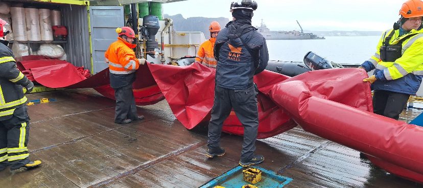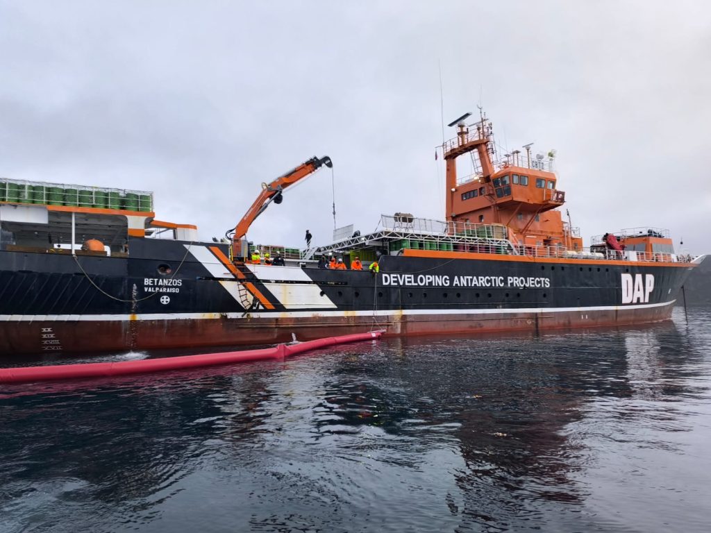 Este 21 de marzo se realizó un ejercicio de combate a la contaminación en Bahía Fildes, el cual fue desarrollado desde el Buque “Betanzos” de DAP por parte de los especialistas de Ambipar, cumpliendo de esta manera con los protocolos de respuesta ante derrame establecido por los convenios internacionales para operar en el continente blanco.