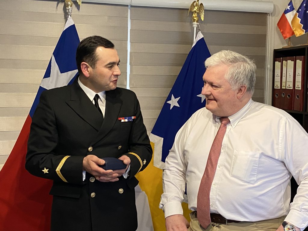 El Senador Alejandro Kusanovic entregó reconocimiento al Suboficial Mayor Roberto Araneda Torres en Punta Arenas.