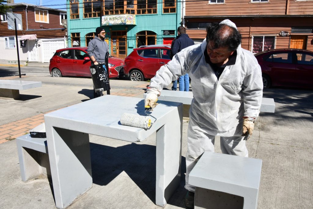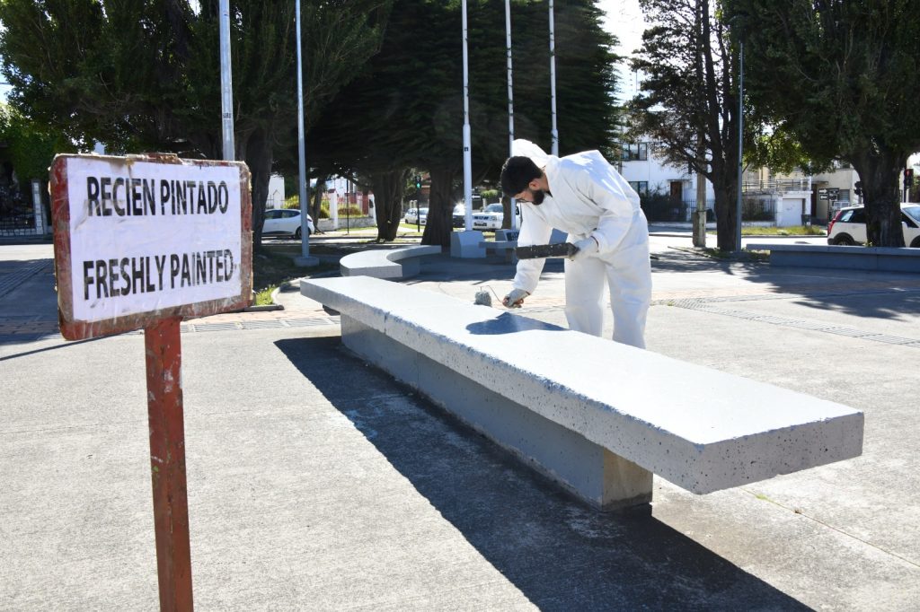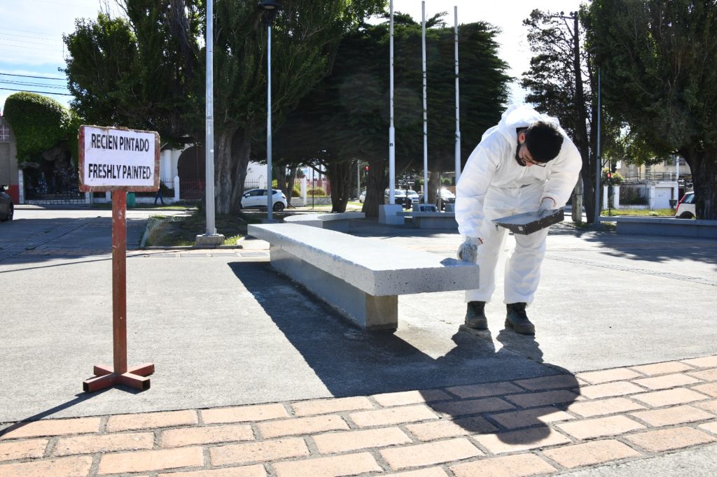 En la Plaza Sampaio, recientemente vandalizada, la Municipalidad de Punta Arenas inició los trabajos de repintado de espacios públicos afectados por rayados, con una inversión programada de $30 millones para el año 2026, destinados a la recuperación y mantención del mobiliario urbano de la comuna, con especial énfasis en plazas emblemáticas de la ciudad.