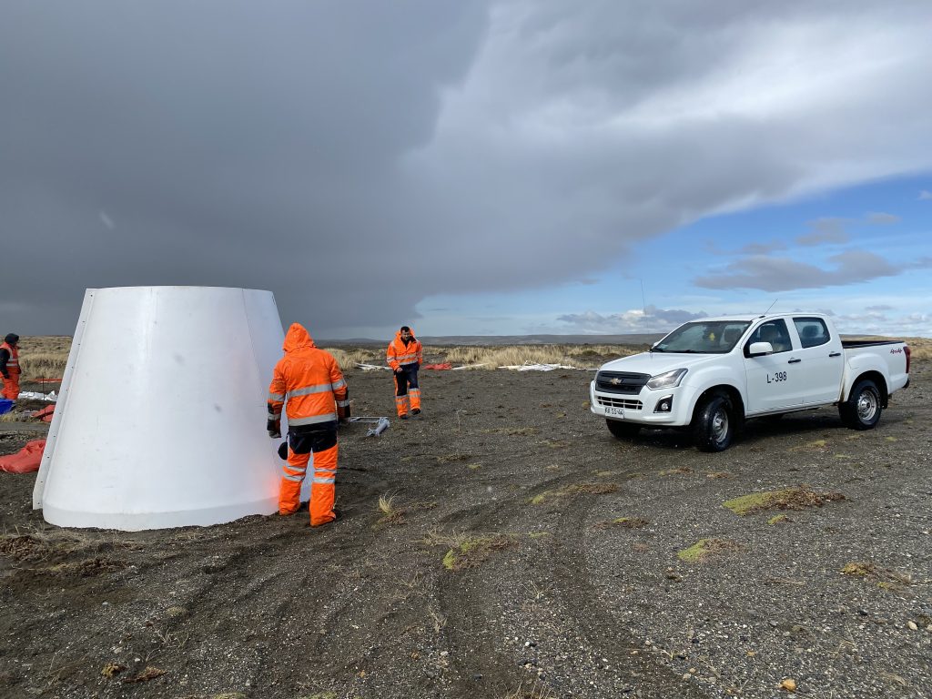 La instalación del campamento consideró las coordinaciones con los dueños de la propiedad, quienes gentilmente dieron acceso y facilidades, instalándose las carpas y los equipos para los trabajos, tarea que fue desarrollada por los especialistas en faro, considerando las condiciones cambiantes de la meteorología magallánica.
