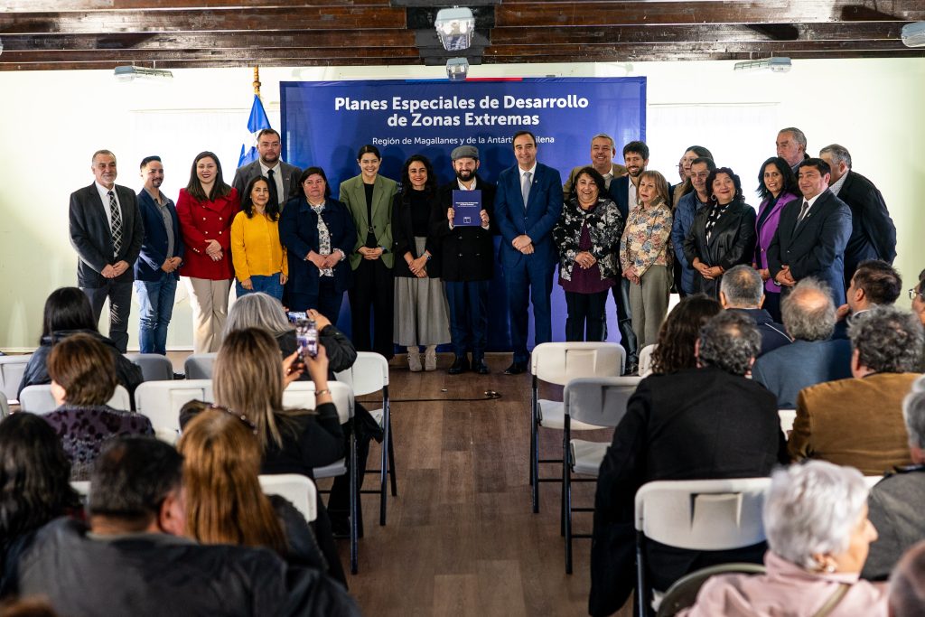 Este viernes 14 de noviembre el Presidente de la República, Gabriel Boric Font, encabezó en Punta Arenas la firma del nuevo Plan Especial de Desarrollo de Zonas Extremas (PEDZE) para la Región de Magallanes y la Antártica Chilena, junto a la subsecretaria de Desarrollo Regional y Administrativo, Francisca Perales; el gobernador regional, Jorge Flies; el delegado presidencial, José Ruiz; y las alcaldesas y alcaldes de Punta Arenas, Claudio Radonich; Natales, Ana Mayorga; Porvenir, José Parada; Primavera, Karina Fernández; Río Verde, Tatiana Vásquez; Timaukel, Luis Barría; y Cabo de Hornos, Patricio Fernández.