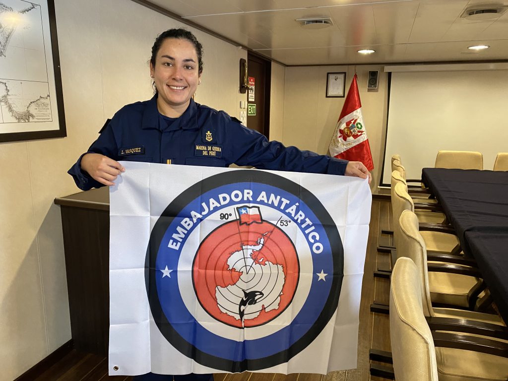 BUQUE ANTÁRTICO PERUANO “CARRASCO” RECIBIÓ EMBLEMA DEL PROGRAMA EDUCATIVO “EMBAJADORES ANTÁRTICOS”